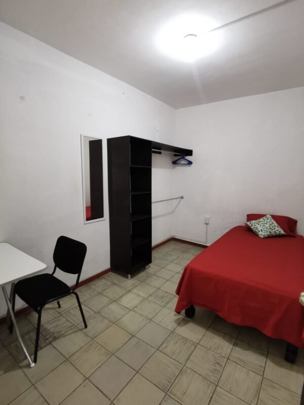 • Habitaciones equipadas con escritorio, silla, buró, cama y ropero.